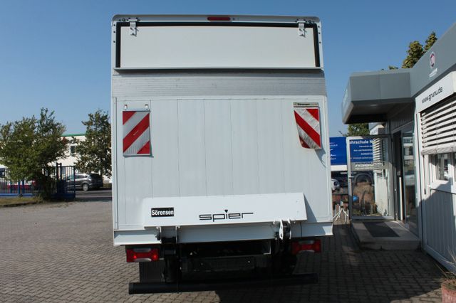 Airbag Fahrerseite, Anhänger-Stabilisierungs-Programm (TSM), Anhängersteckdose Vorbereitung, Antriebs-Schlupfregelung (ASR), Armaturentafel Komfort blau, Ausführung: C-Reihe, Außenspiegel elektr. verstell- und heizbar, Bremsassistent, Elektr. Bremskraftverteilung, Fahrassistenz-System: Berganfahr-Assistent (AAS), Federung Hinterachse: Trapez, Federung Vorderachse: Querblattfeder, Frontscheibe und Seitenscheiben getönt, Generator 210 A, Geschwindigkeits-Begrenzeranlage 160 km/h, Harnstofftank (AdBlue): 20 Ltr., Karosserie/Aufbau: Spier Koffer mit LBW. Kraftstofftank: 70 Ltr., Kühlergrill blau, Motor 2,3 Ltr. - 114 kW Diesel, Radstand 4100 mm, Schadstoffarm nach Abgasnorm Euro 6d, Sitze im Fahrerhaus: Beifahrerdoppelsitz, Wartungsanzeige, Zul. Gesamtgewicht 3,50 t, Zwillingsbereifung an 2. Achse / Hinterachse