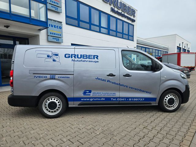 Airbag Fahrer-/Beifahrerseite, Audiosystem: Radio mit USB inkl. Bluetooth und DAB Radioempfang, Außenspiegel elektr. verstell- und heizbar, Einparkhilfe hinten, Elektromotor 100 kW (cont. 57 kW), Fahrassistenz-System: Berganfahrhilfe, Heckflügeltüren ohne Verglasung, HV-Batterie 75 kWh, Karosserie/Aufbau: Kasten, Ladeanschluss 7 kW, Ladekabel mit Schukostecker (Mode 2), Ladekabel mit Typ 2-Stecker (Mode 3), Laderaumtrennwand, Lenkrad mit Multifunktion für Audiobedienung, Parkbremse elektrisch, Radnabenabdeckungen schwarz 16", Radstand 3275 mm, Reifen-Reparaturkit, Reifendruck-Kontrollsystem, Reserverad vollwertig, Schnellladefunktion 100 kW, Sitz vorn links höhenverstellbar mit Lendenwirbelstütze und Armlehne, Sitze vorn mit Armlehnen und Kopfstützen, Stahlfelgen 7x16