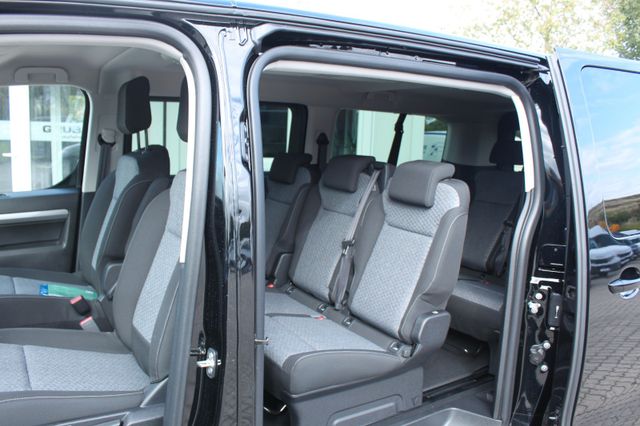 Airbag Fahrer-/Beifahrerseite, Außenspiegel elektr. verstell-, heiz- und anklappbar, Beifahrerairbag abschaltbar, Einparkhilfe hinten, Fahrassistenz-System: Autonomer Notbrems-Assistent (AEB), Fahrassistenz-System: Müdigkeits-Warner, Fahrassistenz-System: Spurhalteassistent, Geschwindigkeits-Regelanlage (Tempomat) mit Abstandsregelung, Getriebe Automatik - (8-Stufen), Heckklappe mit Verglasung / Heckwischeranlage, Heckklappenöffnung elektrisch, Heckscheibe aufstellbar, Heckscheibe heizbar, HiFi-Soundsystem mit 8 Lautsprecher und Subwoofer (Beats Audio), Infotainment-System: UConnect mit DAB+ Radioempfang (Touchscreen 10,25"), Karosserie/Aufbau: Kombi, Klimaanlage im Fond zusätzlich, inkl. Zusatzheizung, Kombiinstrument digital (10,0 Zoll), Motor 2,0 Ltr. - 132 kW BlueHDi, Parkbremse elektrisch, Radstand 3275 mm, Reifendruck-Kontrollsystem, Rückfahrkamera Park View, Schadstoffarm nach Abgasnorm Euro 6e, Scheinwerfer LED, Schiebetüren links und rechts, Sitzbezug / Polsterung: Stoff, Sitzheizung vorn, Smartphone kabellose Schnittstelle (Apple CarPlay & Android Auto)